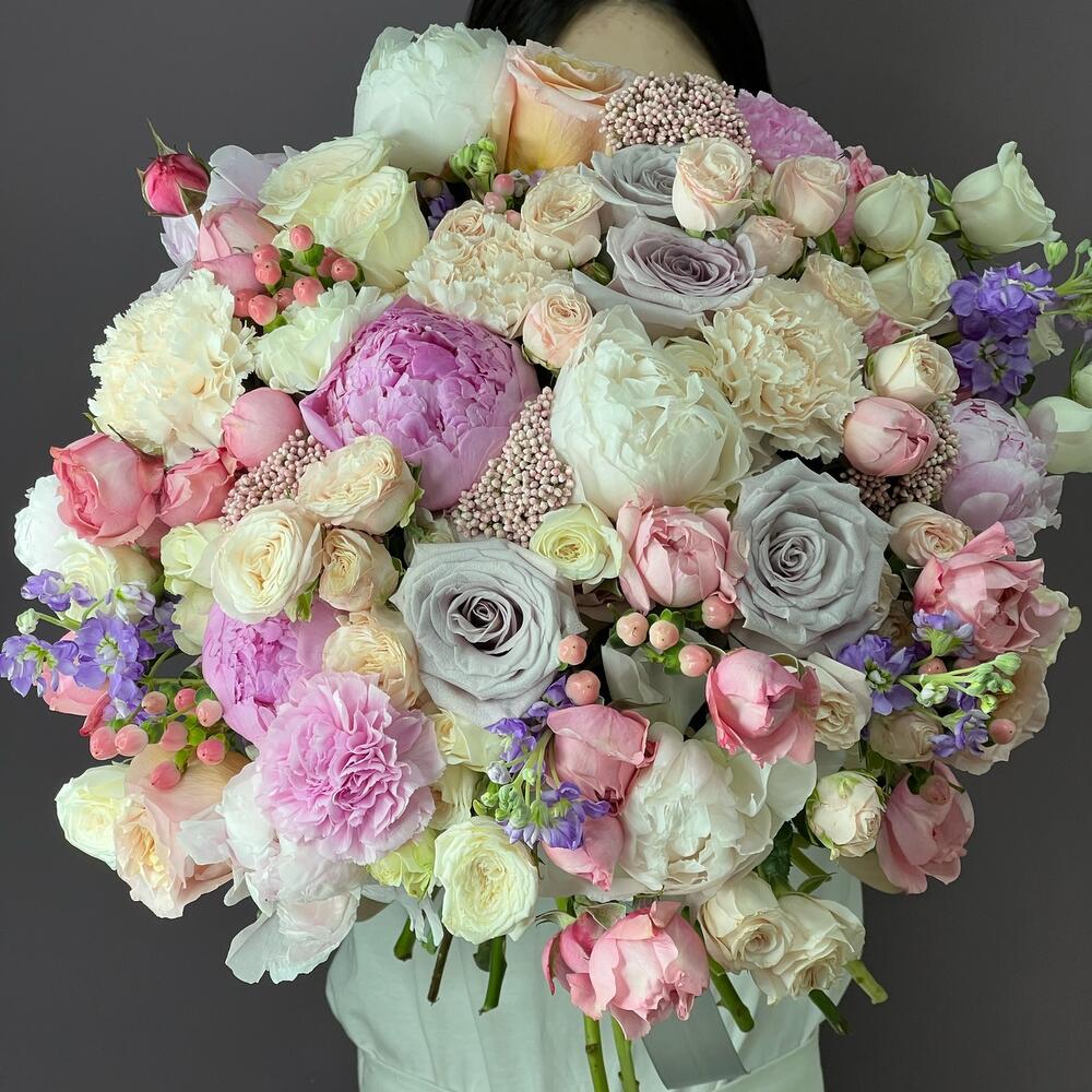 Розы9,пионы7,маттиола7,озатамус5 ,кустовая Роза 7,гвоздика 8