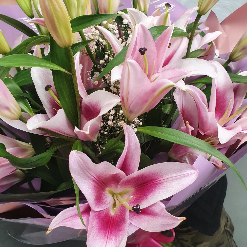 Ароматный букет розовых лилий 9 шт