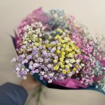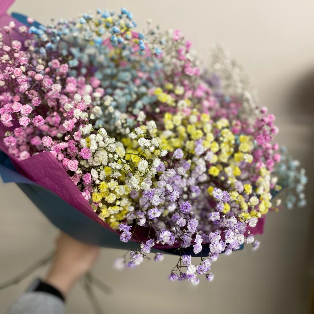 Букет с радужной гипсофилой