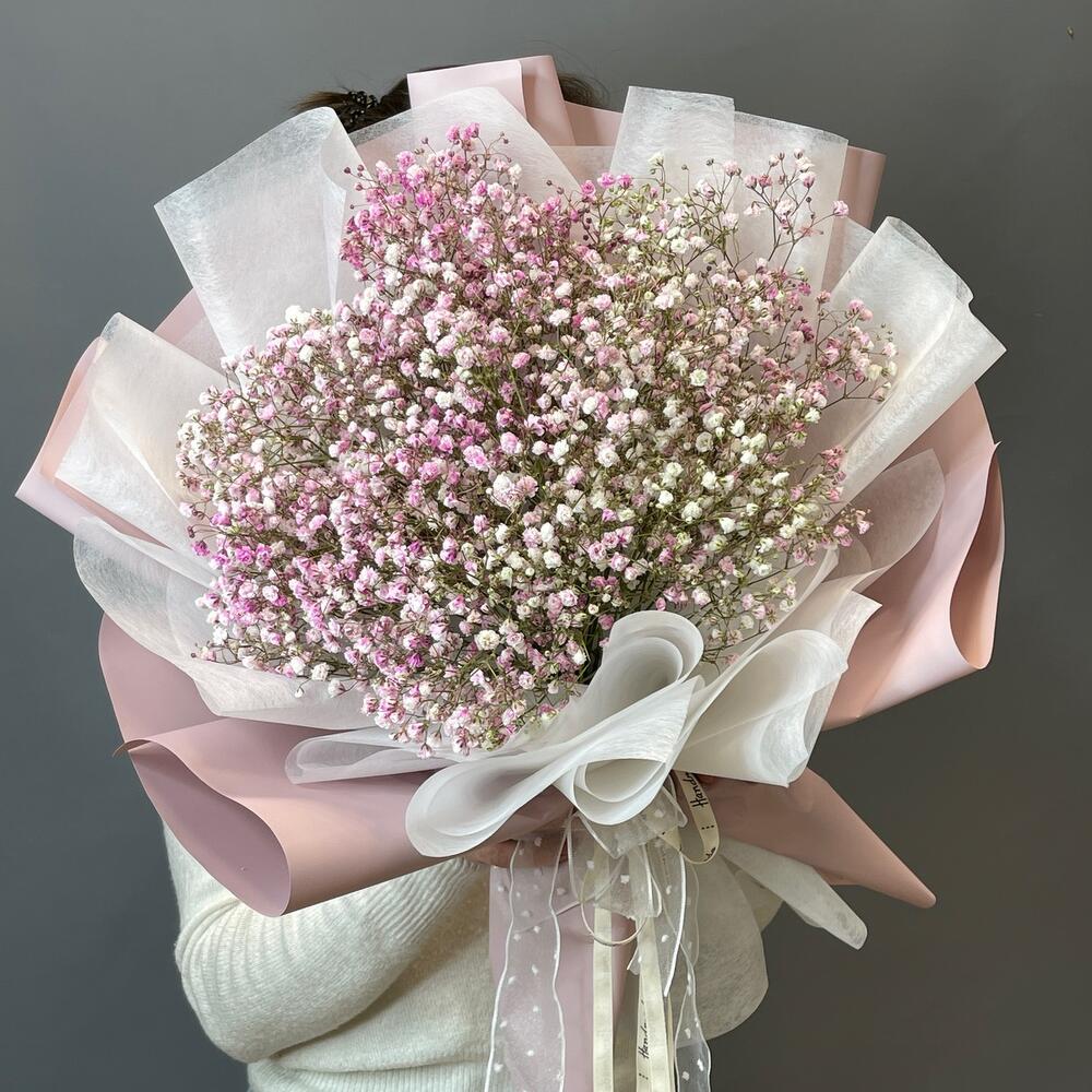 Букет с воздушной гипсофилой «Розовое облачко»