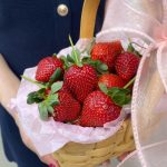 Клубника в корзиночке с веточками гипсофилы