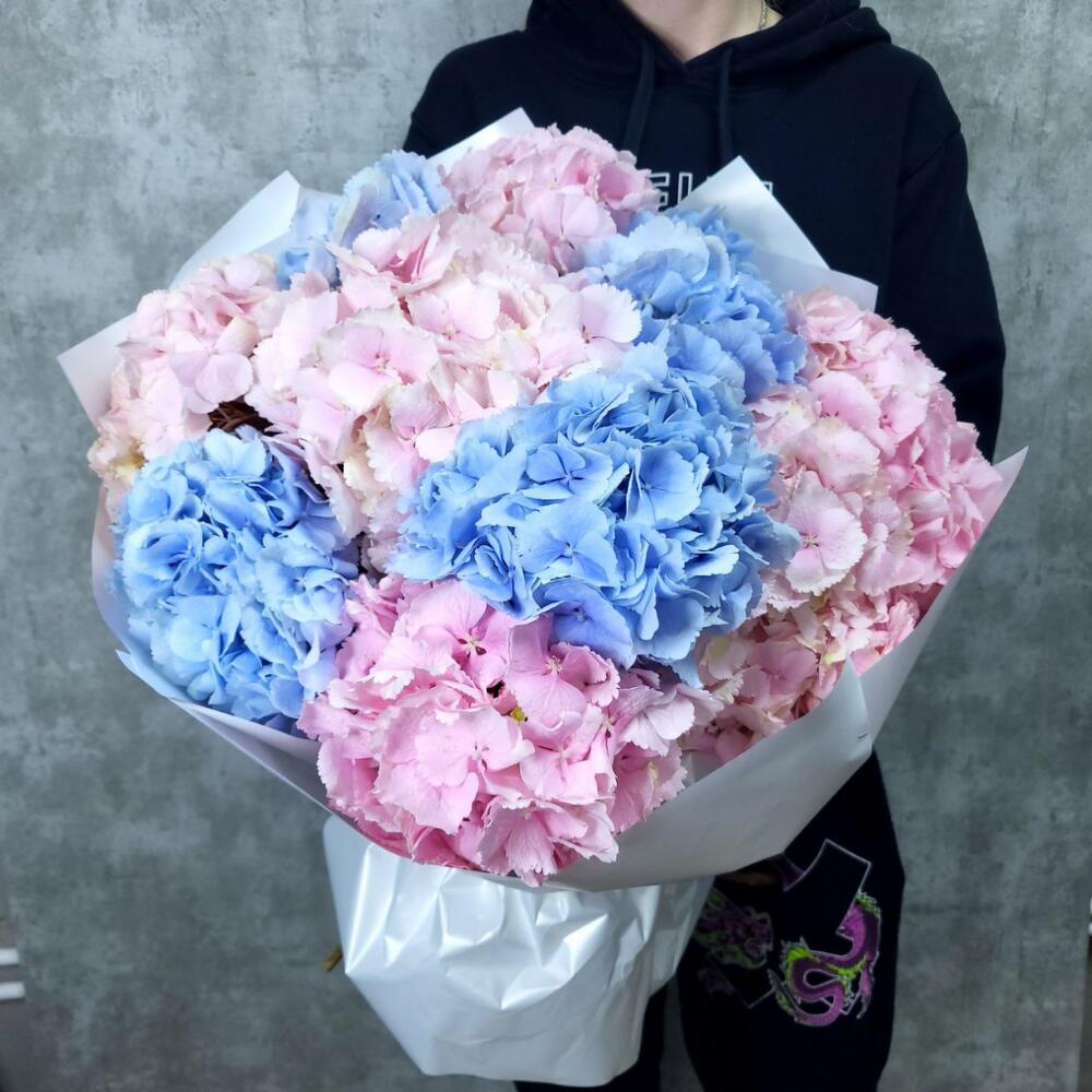 Гвоздики, Гортензии, Лизиантусы, Пионовидные розы, Розы