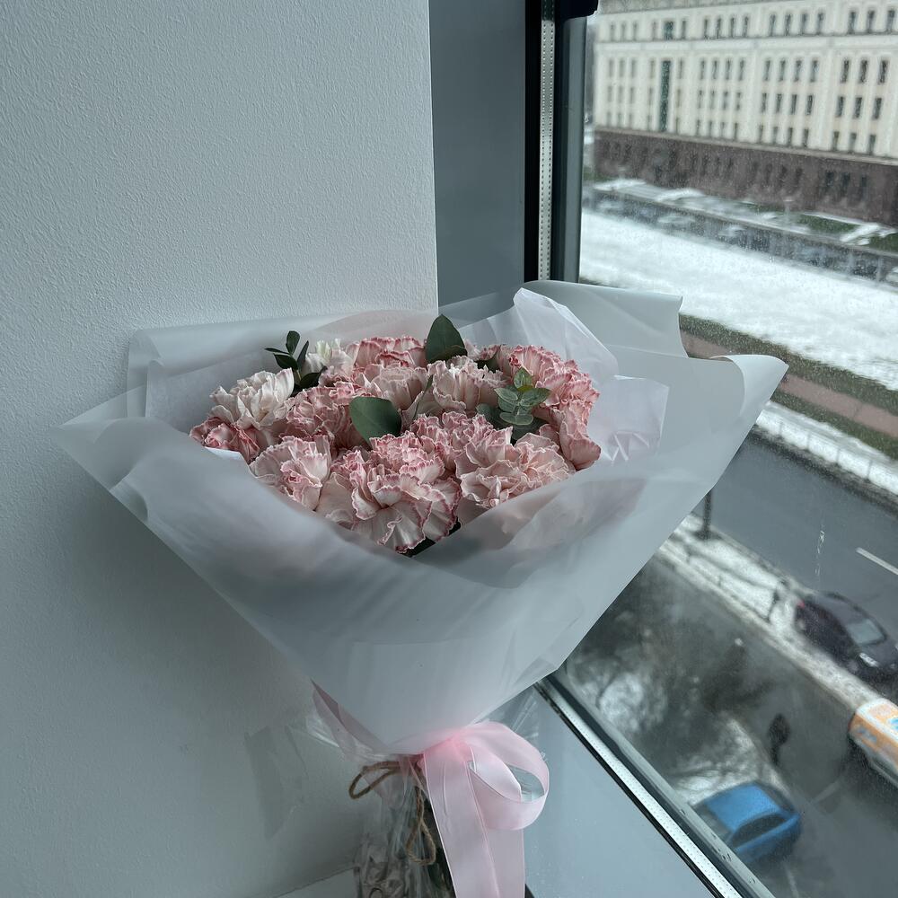 15 розовых гвоздик с эвкалиптом (букет N 26)