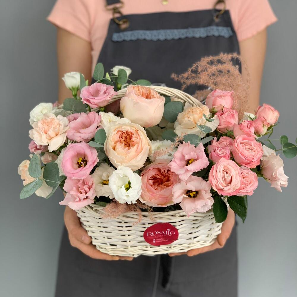 Гвоздики, Лизиантусы, Розы, Тюльпаны