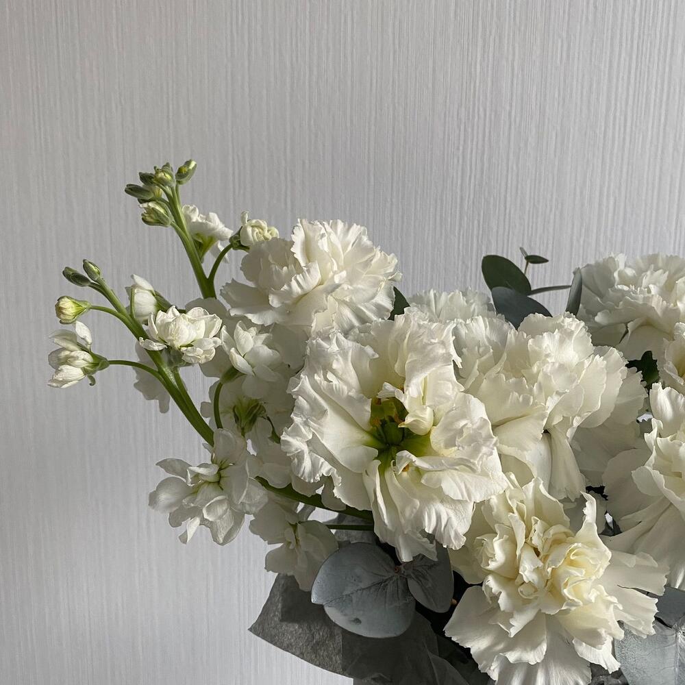 Маттиола – 3 шт.Эвкалипт – 1 шт.Эустома – 1 шт.Диантус – 8 шт.
