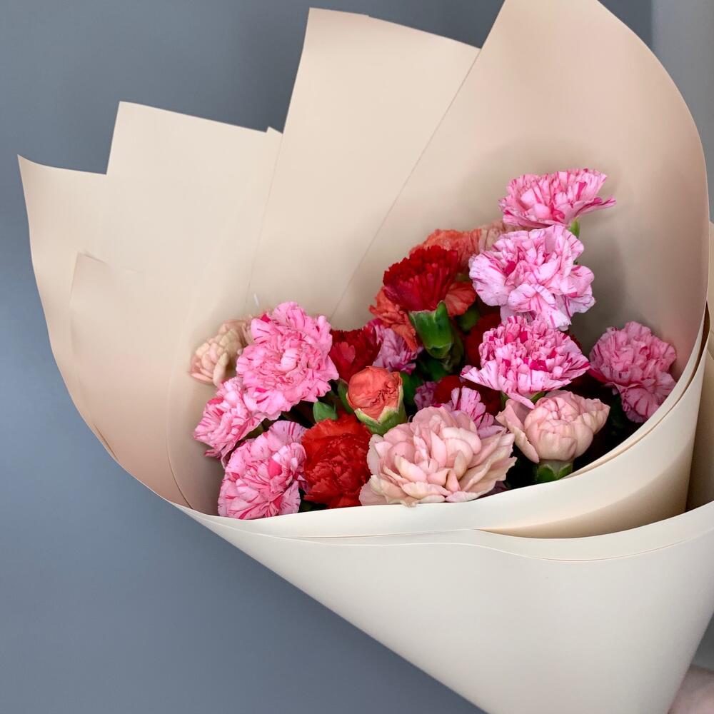 Лента атласная – 2 шт.Диантус кустовой – 11 шт.Дизайнерская упаковка – 2 шт.