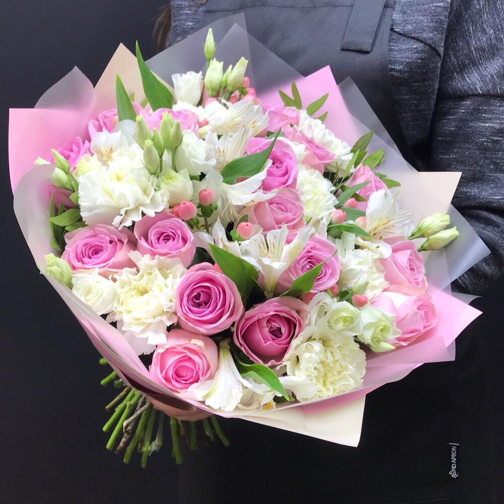 Гвоздики, Кустовые розы, Лизиантусы, Пионовидные розы, Розы
