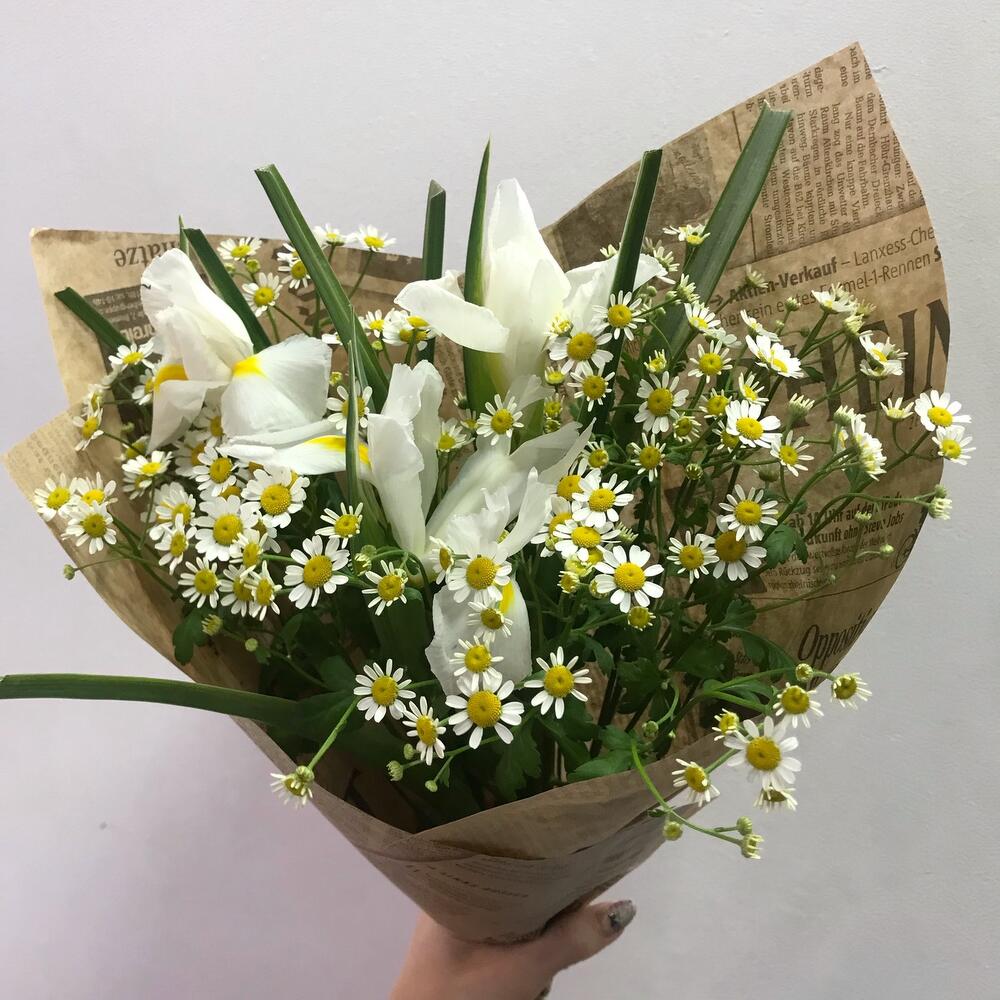 Ирис – 3 шт.Матрикария – 3 шт.Упаковка дизайнерская – 1 шт.