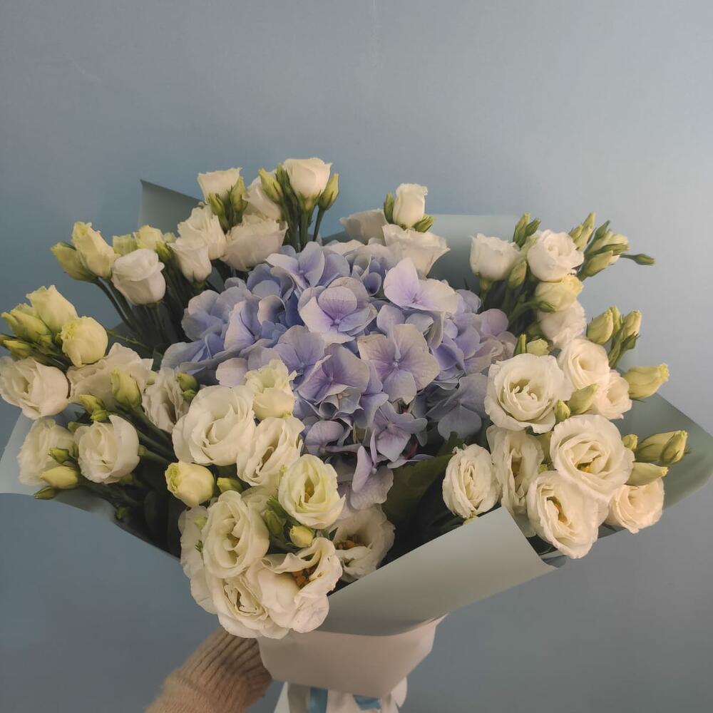 Букет из гортензии и эустомы