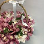 Орхидея Цимбидиум ветка – 4 шт.Оазис флористический – 3 шт.Корзина плетеная – 1 шт.