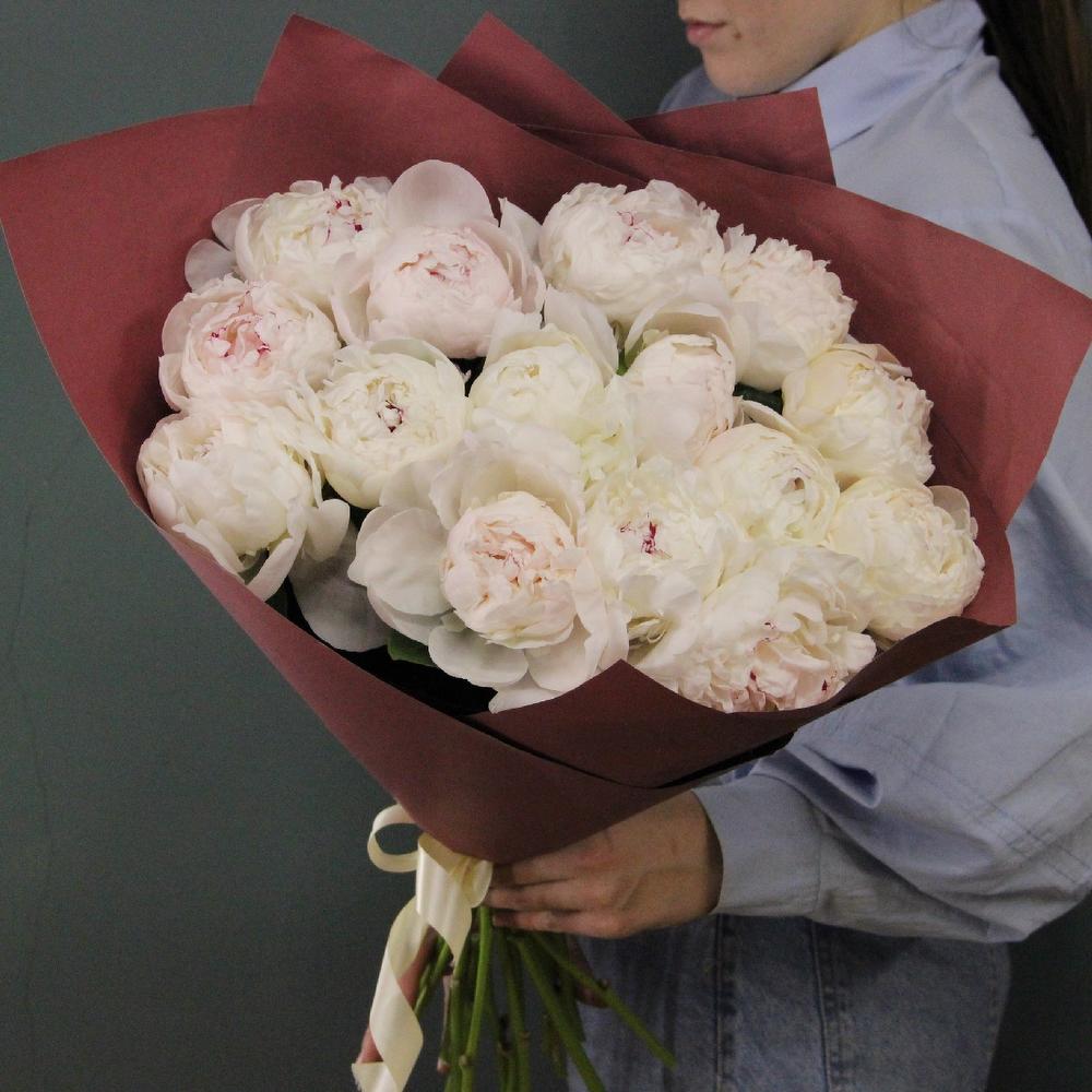 Пион – 17 шт.Лента атласная – 2 шт.Упаковка дизайнерская – 3 шт.