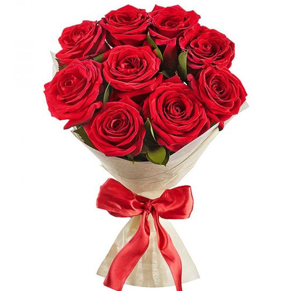 9 КРасных Роз в упаковке