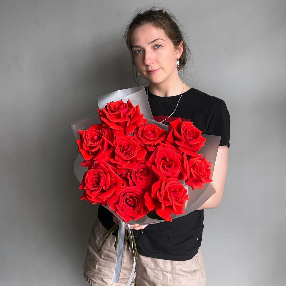 Лента – 1 шт.Дизайнерская упаковка – 1 шт.роза nina премиум – 11 шт.