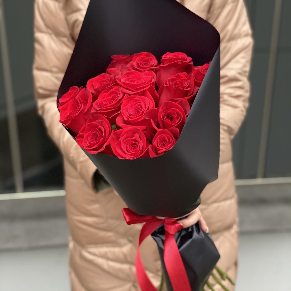 роза красная фридом – 15 шт. Оформление – 1 шт.