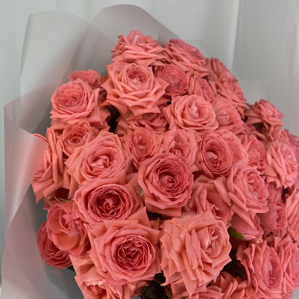 Кустовая роза – 25 шт.Упаковка – 3 шт.Атласная лента – 2 шт.