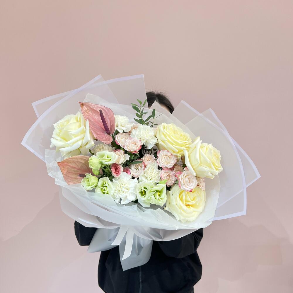 Гвоздики, Кустовые розы, Пионовидные розы, Розы