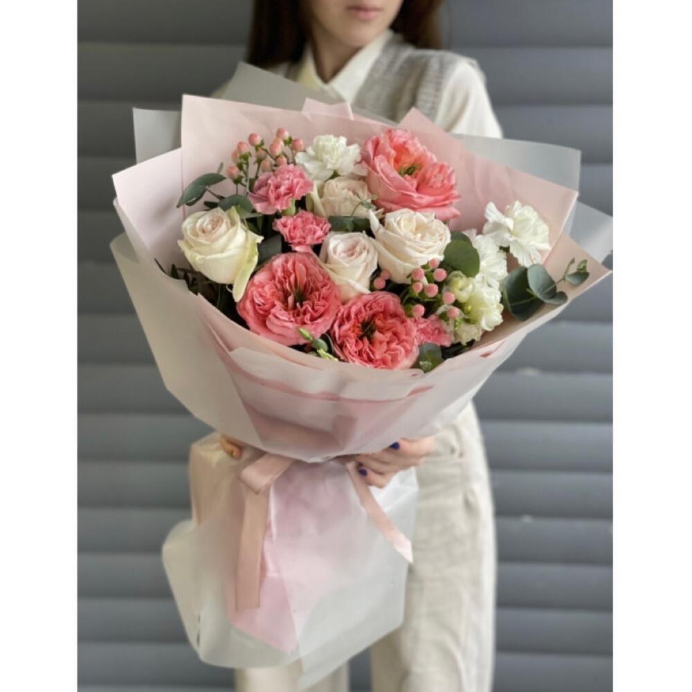 Гвоздики, Кустовые розы, Лизиантусы, Пионовидные розы, Розы