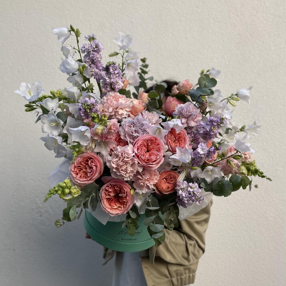 Авторская композиция в шляпной коробке от нашего шеф флориста.