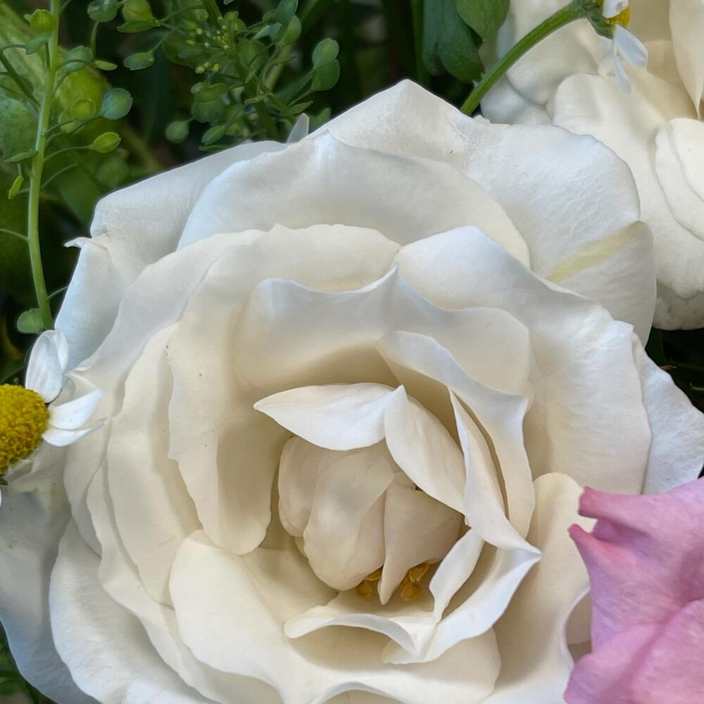 Цветочная композиция в шляпной коробке с розой, лизиантусом и матрикарией.Композиция, которая подарит искренние эмоции каждому.* По вашей просьбе, мы подпишем открытку с наилучшими пожеланиями.* Каждый букет цветов (композиция цветов в коробке) упаковывается в прозрачную плёнку и в крафтовый пакет.* К букету прилагается инструкция по уходу и пакетик с подкормкой для продления жизни срезанных цветов в вазе и цветочных композициях на флористической губке.