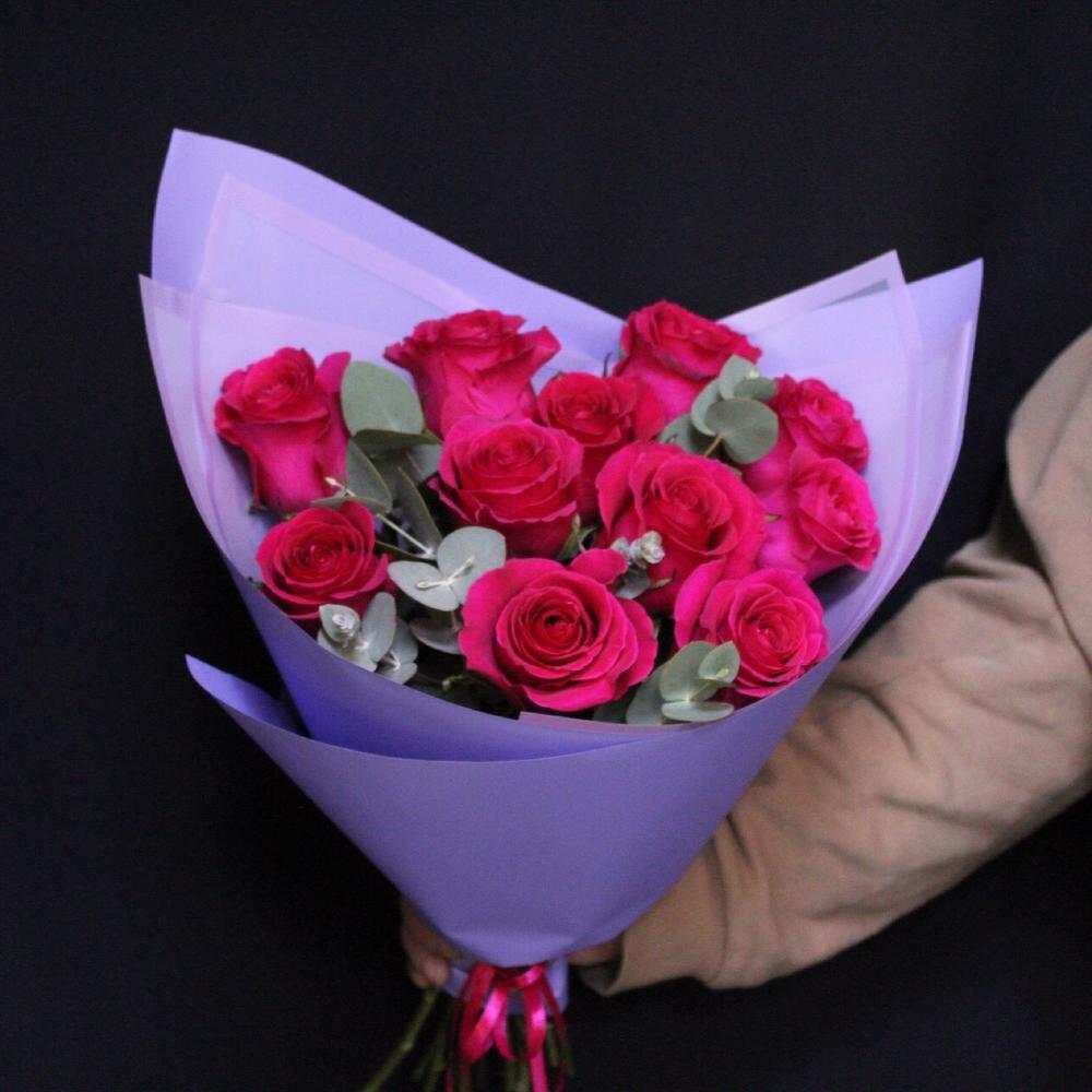 mono bouquet 69 из 11 роз сорта pink floyd с эвкалиптом